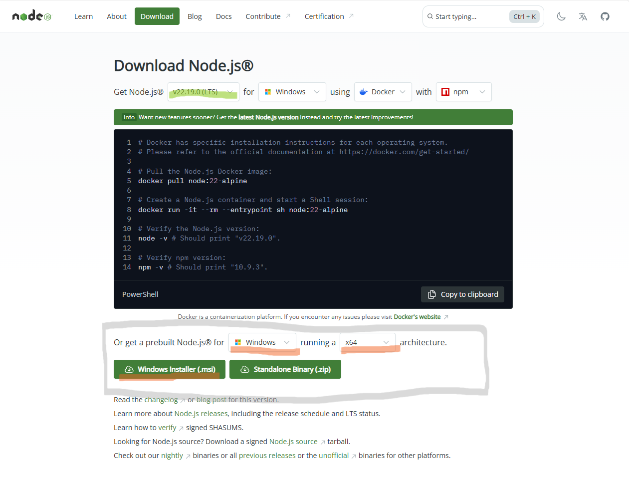 Node.js에서 확인 하실 수 있습니다. 운영체제에 맞춰서 Node.js 버전을 확인하시고 설치 파일을 다운로드 하셔서 설치하시면 됩니다. 설치시 대부분의 경우 기본으로 제공되는 옵션 및 선택사항을 수정없이 설치하시면 됩니다. 설치 후에 터미널을 실행해서 Node.js 버전을 확인하시면 됩니다.