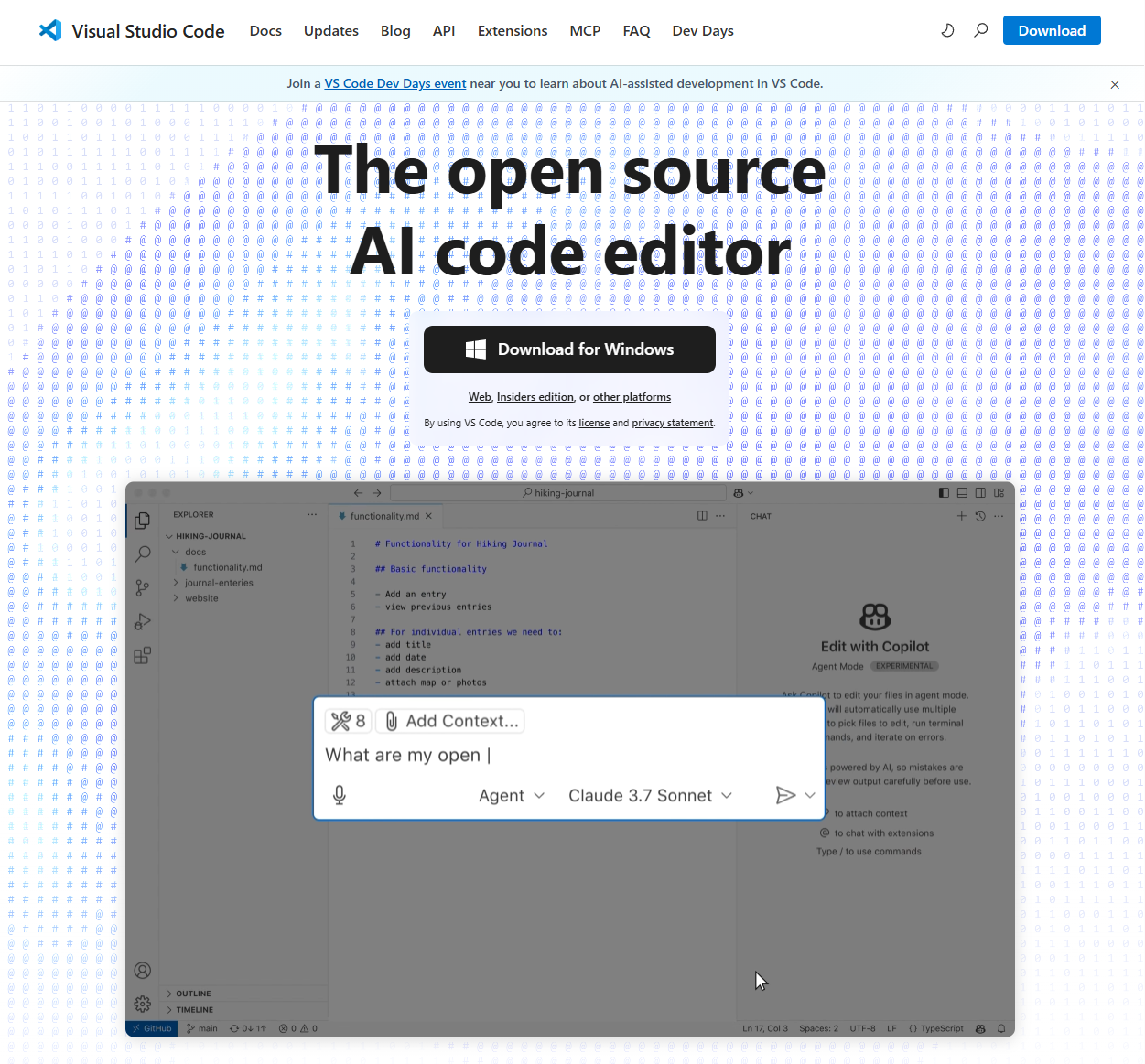 VSCode는 Microsoft에서 개발한 오픈소스 코드 에디터로 플러그인 기능을 통해서 다양한 형태로 활용할 수 있는 텍스트 편집기입니다. VSCode는 현재 가장 많이 사용되고 있는 코드 에디터 중 하나로, 다양한 프로그래밍 언어를 지원하고, 확장 기능을 통해서 다양한 기능을 추가할 수 있습니다.